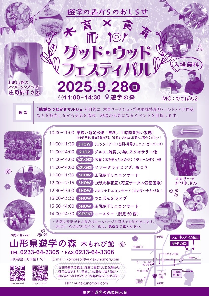 木育ワークショップやハンドメイド作品のマルシェのほか、ミニコンサート…