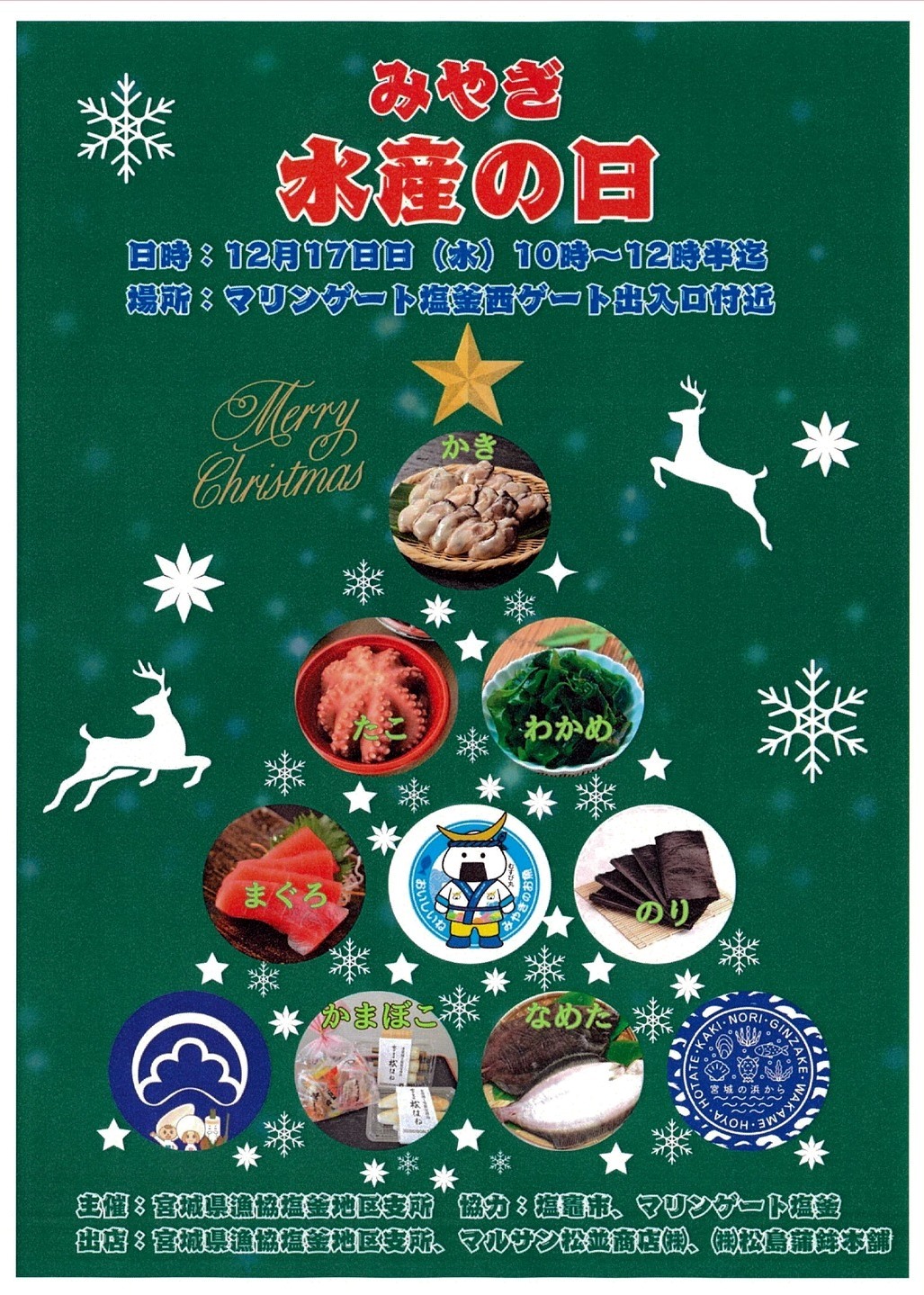 新鮮な獲れたて魚介のほか丸森野菜・果物・新米なども販売されます。