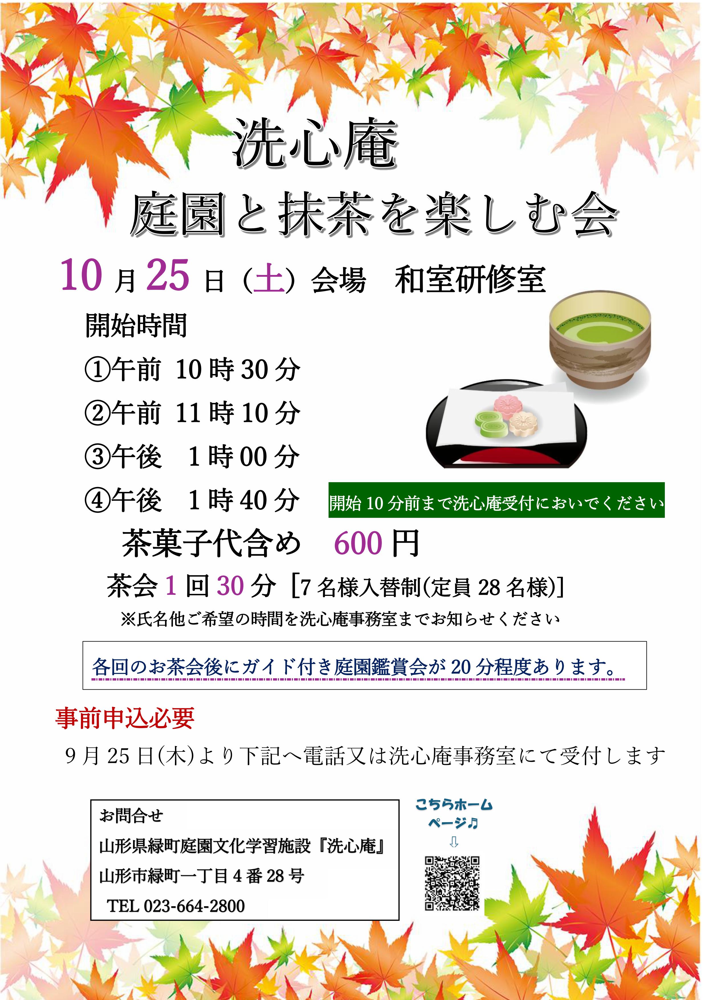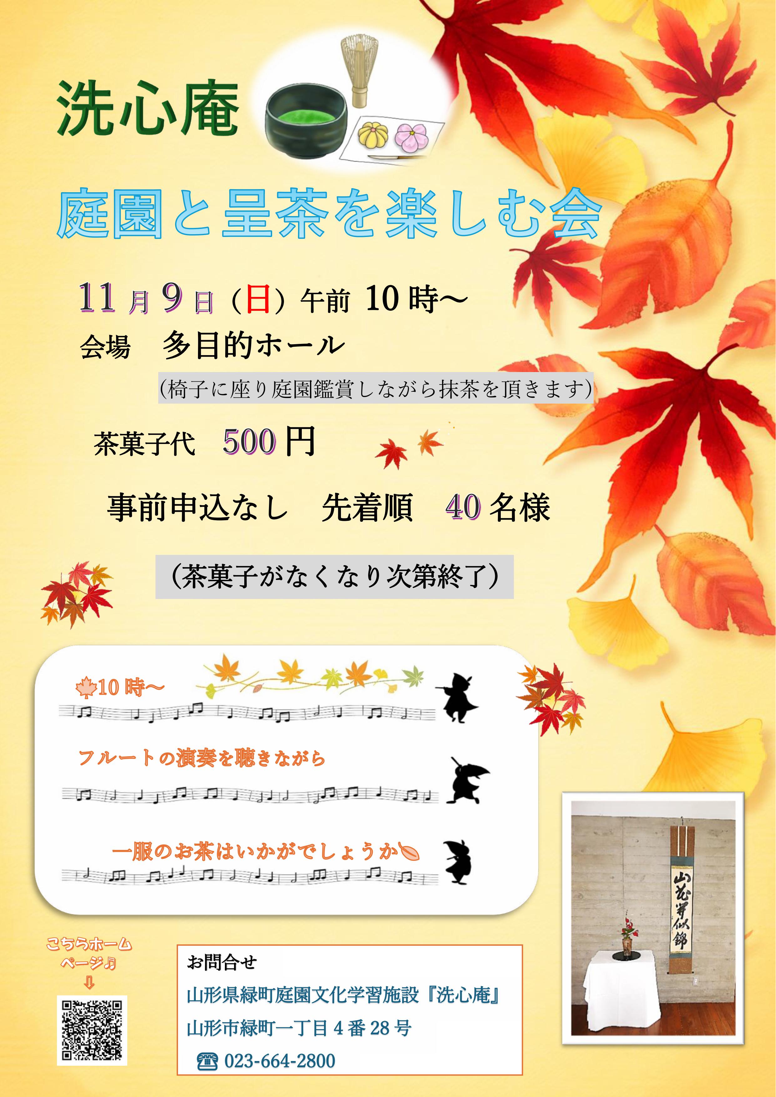 洗心庵の和室で開催する茶会とガイド付き庭園鑑賞はいかがですか?