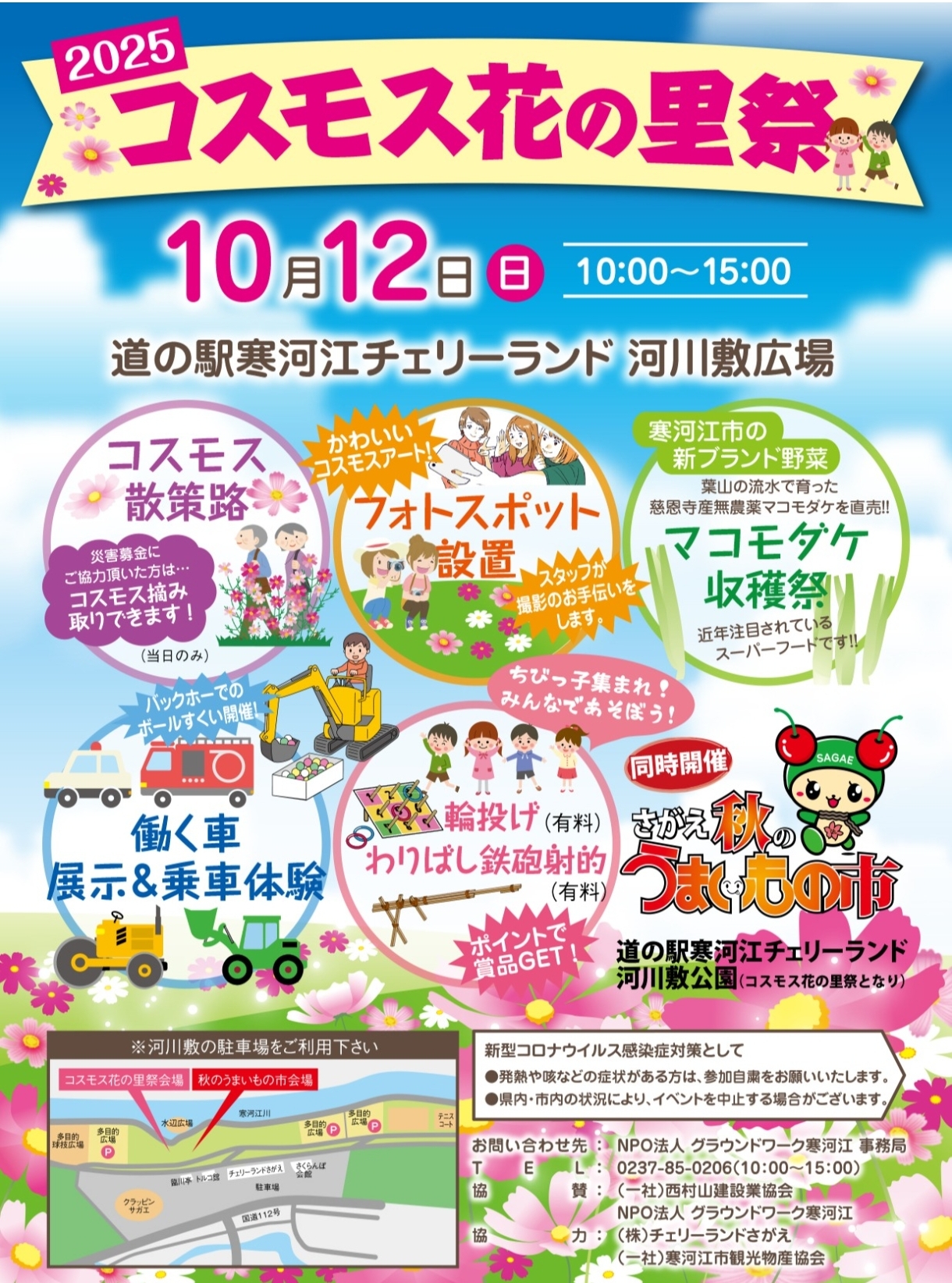 今年もコスモス花の里祭が開催されます、チェリーランドの「さがえ秋のう…