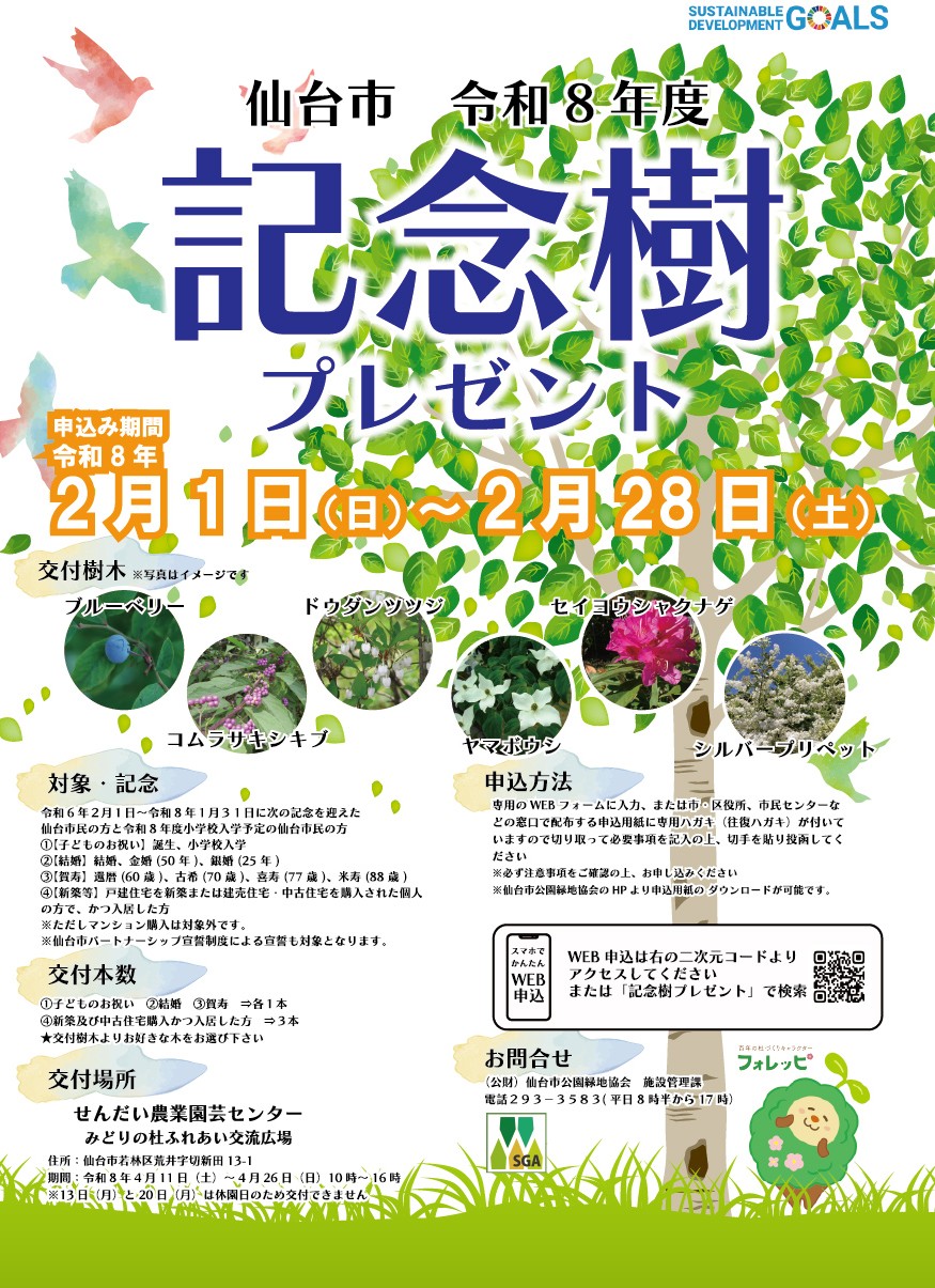 2026年2月1日(日)~2月28日(土)仙台市 記念樹プレゼント「申込期間」
