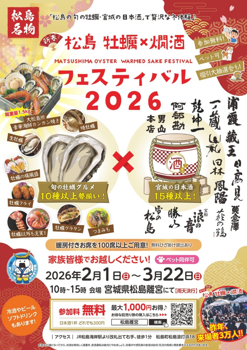 2026年2月1日(日)~3月22日(日)宮城県松島離宮 第2回 松島 牡蠣×燗酒フェスティバル