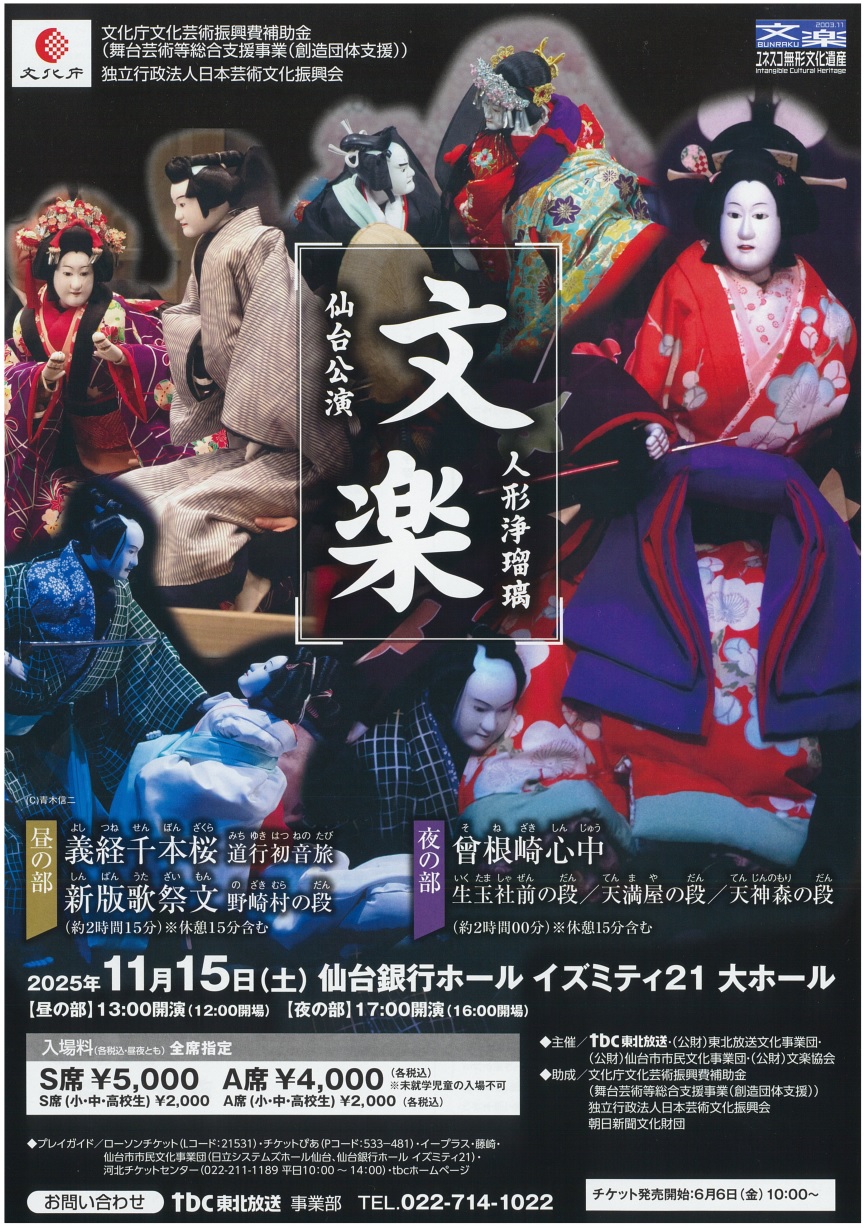 2025年11月15日(土)人形浄瑠璃「文楽」仙台公演