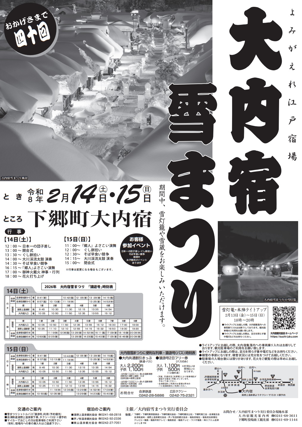 2026年2月14日(土)~2月15日(日)第40回 大内宿雪まつり