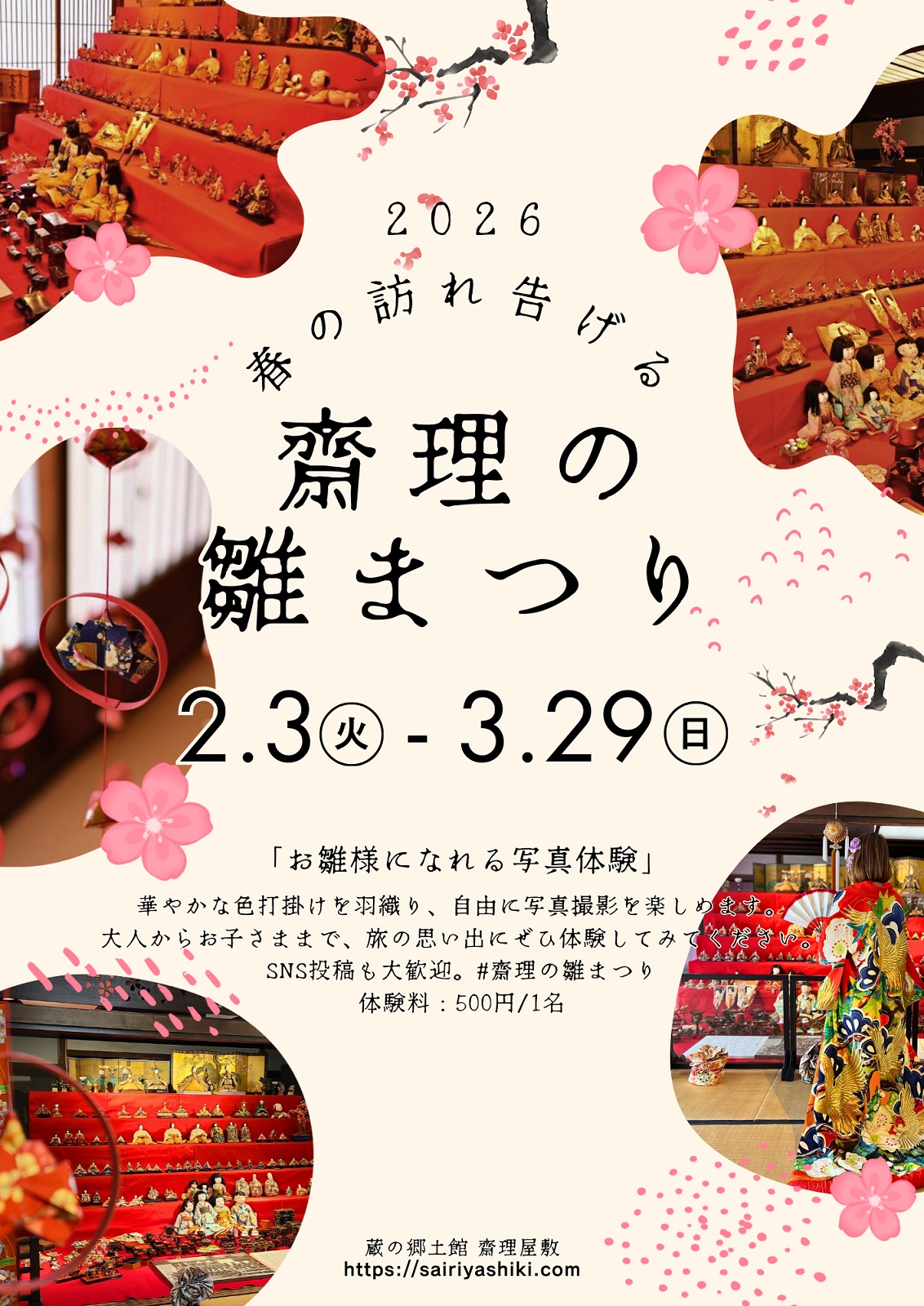2026年2月3日(火)~3月29日(日)齋理の雛まつり