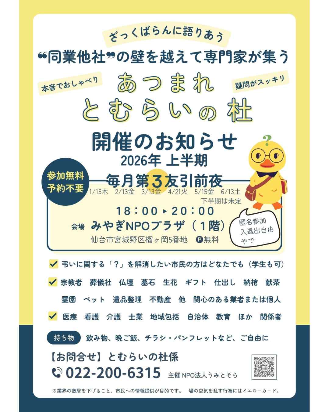 2026年2月13日(金)弔いに関する「?」を相談しに来れる場所。 あつまれ とむらいの杜【開催】次回2026/2/13