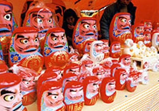 およそ300年前から続く名物行事で、高柴デコ屋敷で作られただるまや張…