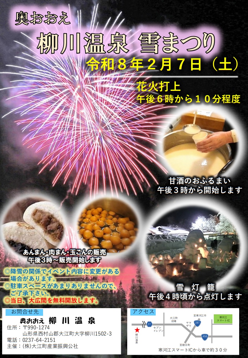 2026年2月7日(土)奥おおえ柳川温泉雪まつり
